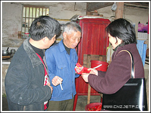 2月12日,春节前夕,学院党委副书记潘素芳与院办、宣传部负责人董伟统、潘春胜一行3人赴桐庐县横村镇香山村慰问村干部和村贫困户,向他们拜年。