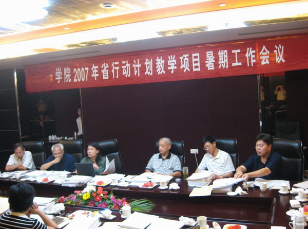 2007年8月1日—3日,学院在浦江召开2007年浙江省教育振兴行动计划项目建设暑期工作会议。参加此次会议的有浙江省供销社副主任瞿建、学院领导童学敏、李曙明、周文根和其他学院省级教学项目建设领导小组成员,以及部分校外专家也应邀参加了本次会议。会议由周文根副院长主持。