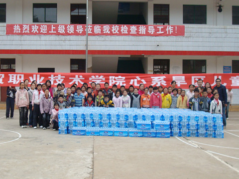 经支部成员多方联络协商,大家决定将善款用于购买瓶装水捐赠给昆明西山区团结乡永靖村小学。该小学位处高寒山区,海拔2100米,是一个主要由白族、彝族儿童组成的民族小学,在本次旱灾中受灾十分严重。4月23日,受我院委托的送水车满载着6720瓶康师傅矿泉水来到了永靖村小学,将爱与希望传递给了该校学生。