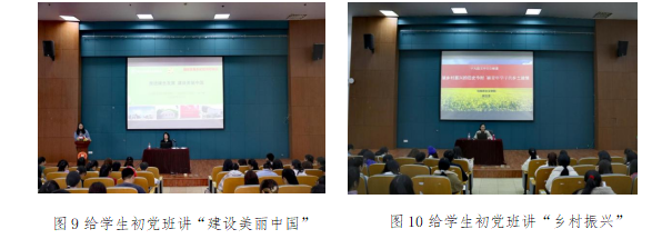 浙江经贸马克思主义学院具有培养大学生“三农”情怀的历史传统。一是打磨乡村振兴系列宣讲专题,马院将党史宣传教育与通识教育相结合,在“概论”课乡村振兴战略教学基础上,形成了宣讲乡村振兴战略的系列专题,如“乡村振兴,我们怎么做”、“人才下乡的那些事儿”、“农创客离我们有多远?”等系列专题。二是走课堂、进党班宣讲乡村振兴。韩玉洁、胡小爱老师走进学校初党班,给同学们分别进行了“美丽中国、美丽乡村”和“谈乡村振兴的旧史今时 植青年学子的乡土故情”的专题教育。三是融合学生的社会实践。引导学生尤其是农业经营管理的学生“走到田间地头”进行社会调查,了解农情,潜移默化培养为农服务的思想意识。同时,创新开展了“我来讲三农”党史系列活动,让同学们自己讲“三农”故事。
