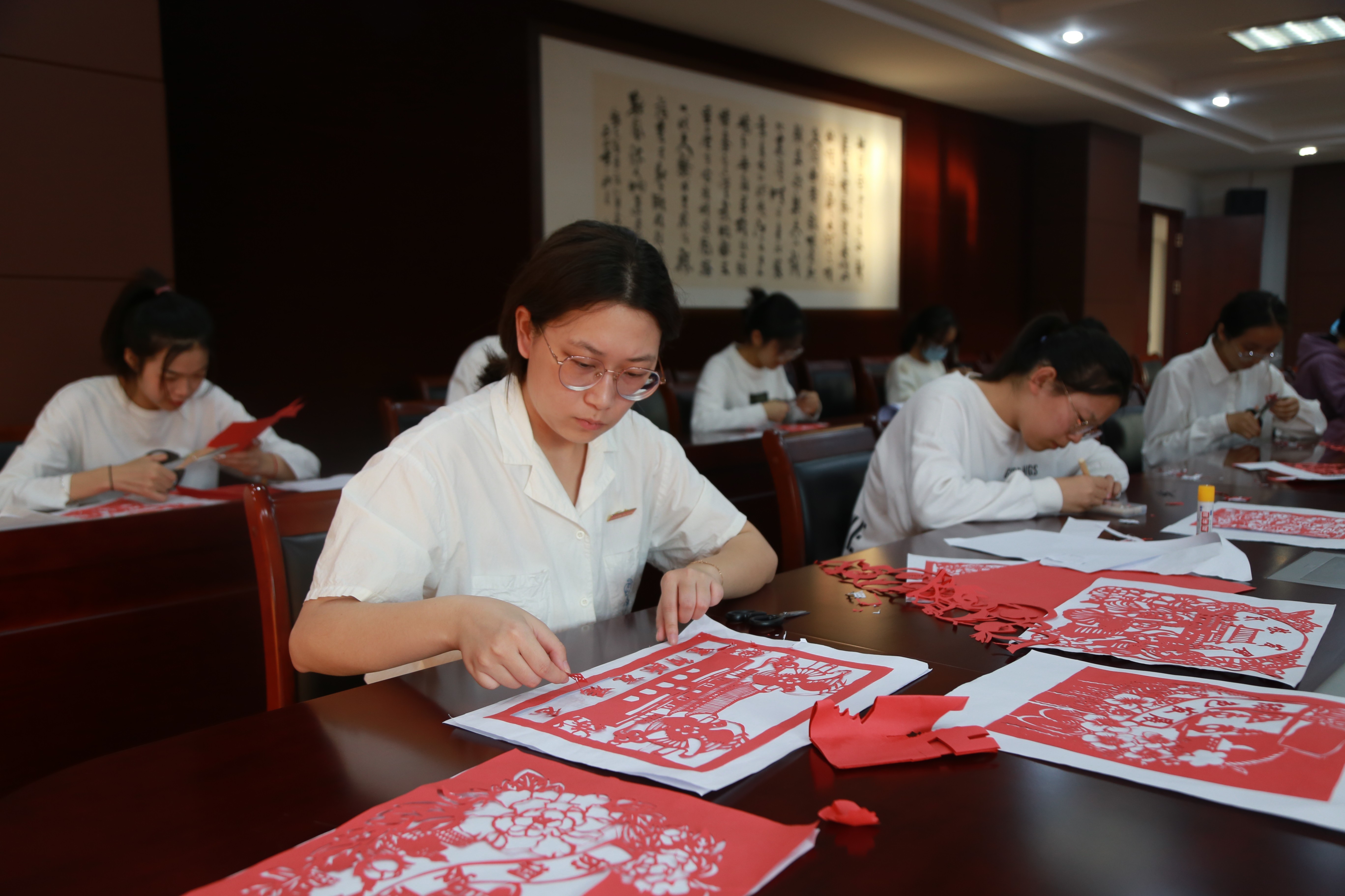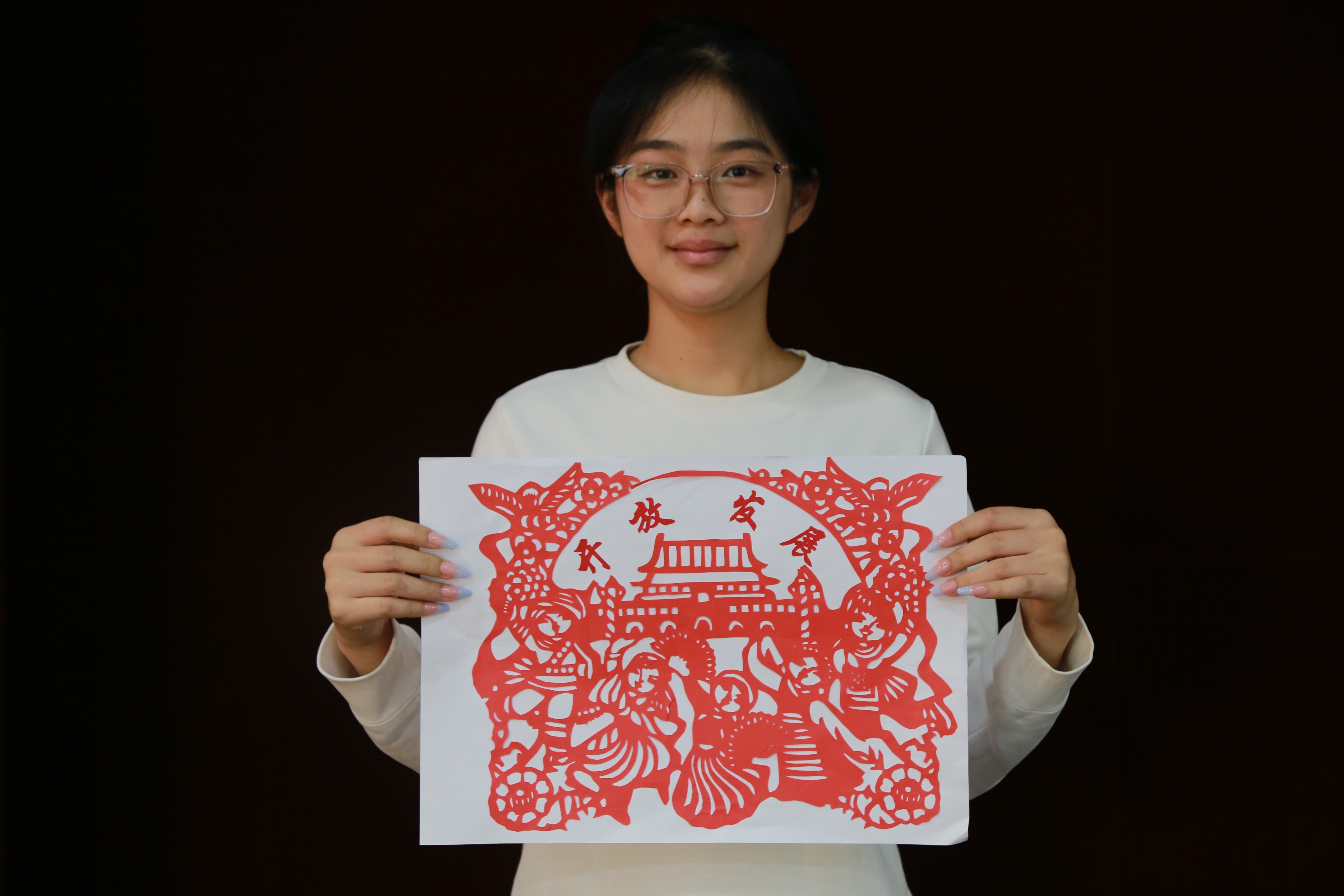 在老师的指导下,同学们纷纷拿起剪刀或刻刀,认真地剪刻每一个细节。由于一些同学是剪纸“新手”,往往一剪一刻就是好几个小时。“当一幅幅完整的剪纸作品呈现在我眼前的那一刻,心底的成就感油然而生。”会展211班的钱欣怡同学表示,剪纸作品虽有些许的不完美,但饱含着同学们对党和祖国的深厚情感。
