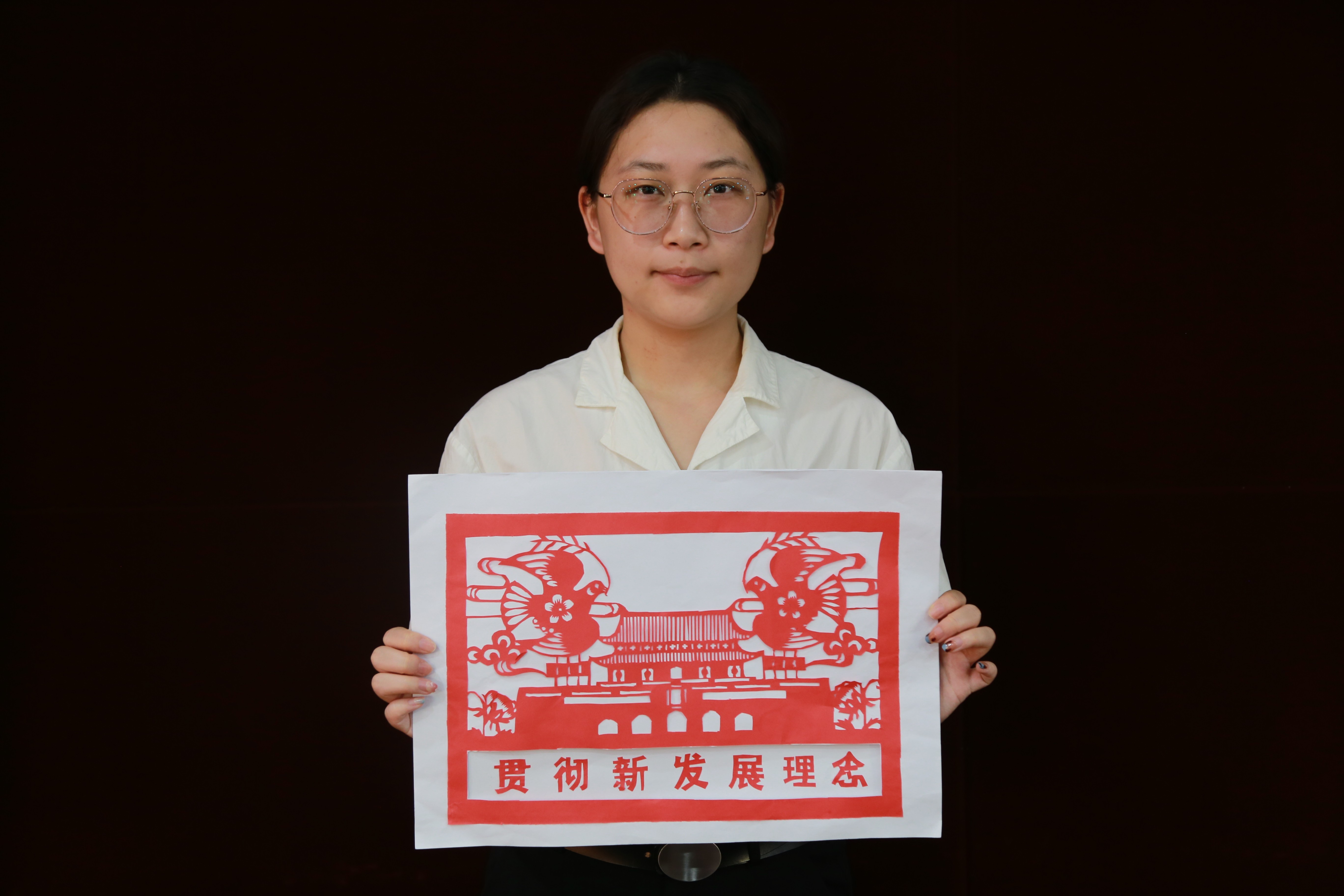“贯彻新发展理念是新时代我国发展壮大的必由之路。”酒管212班学生董一丹表示,党的二十大报告中的这句话给她留下了深刻印象,她想通过剪纸作品勉励自己奋发学习,树立创新、协调、绿色、开放、共享的发展理念,为全面建设社会主义现代化国家贡献自身力量。